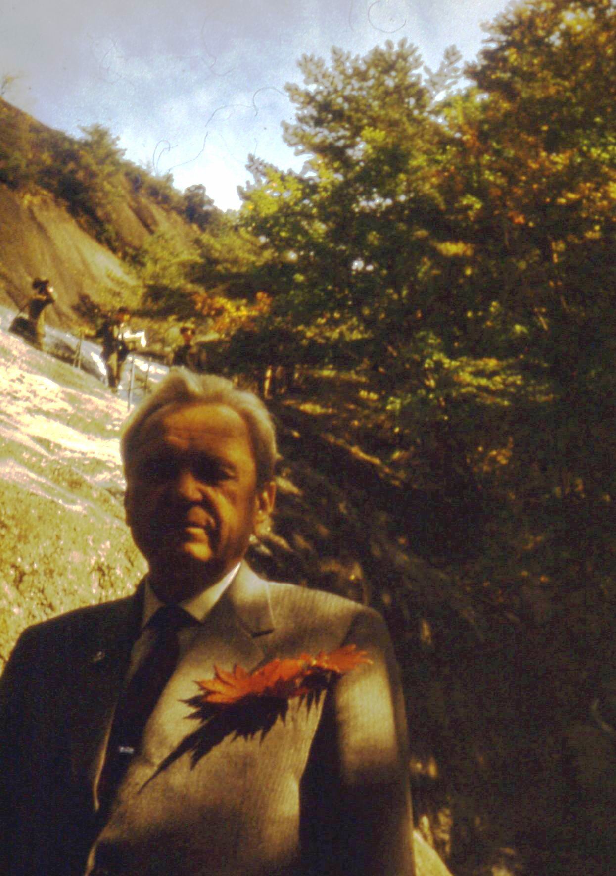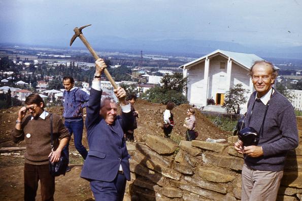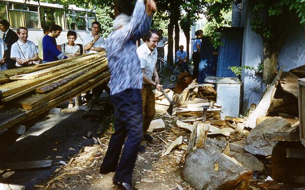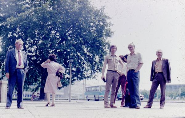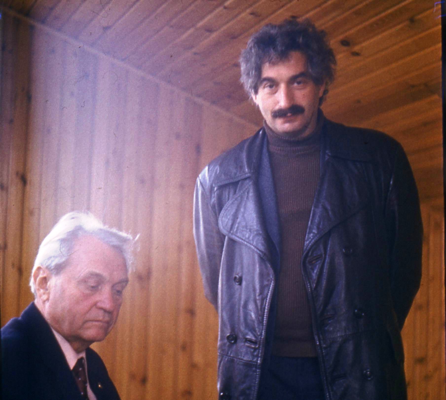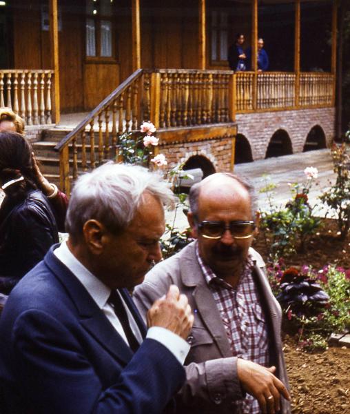 Во время экскурсии Г.С. Поспелов демонстрирует И. Пландеру (Словакия), как приходится сражаться с бюрократами,