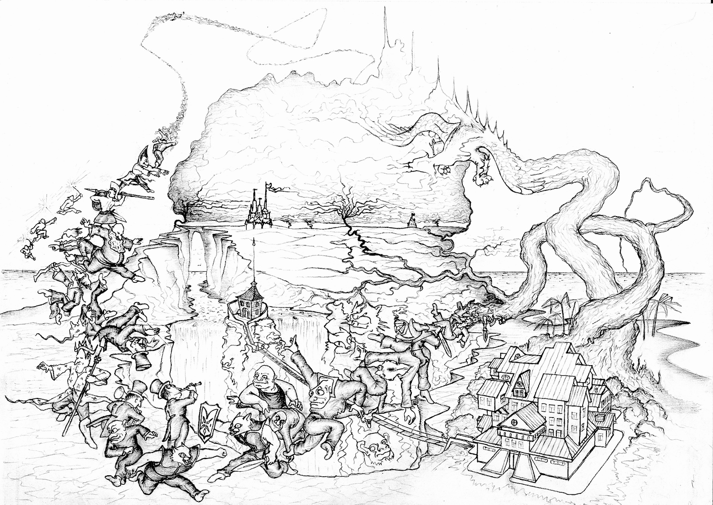 Рифы, задумчиво смотрящие вдаль (карандаш и римейк тушью). |